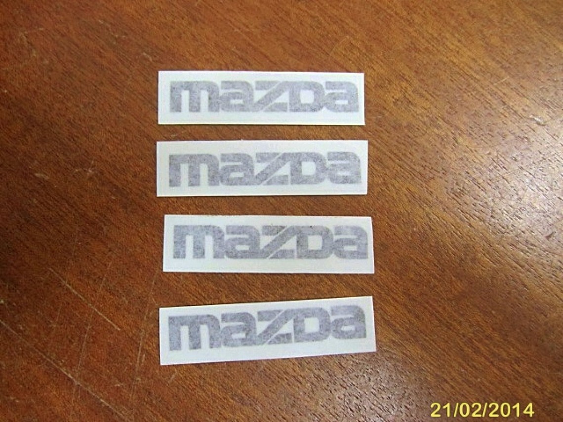 Set of 4 "Mazda" logo wheel centre vinyl stickers. Suitable for various Mk1 special edition alloy wheels. Perfect for that finishing touch on your refurbed wheel.