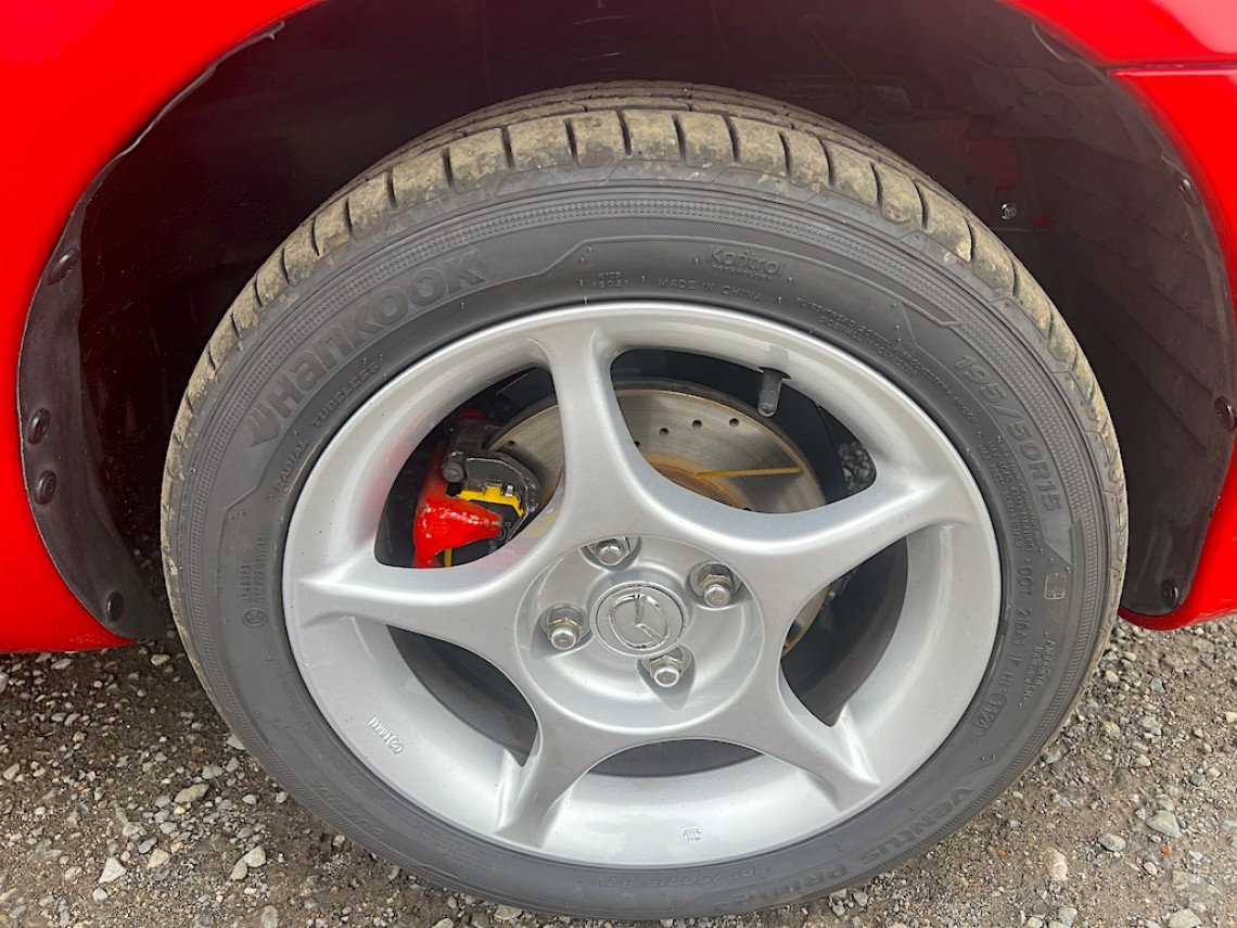 2002 Mazda MX-5 Mk2.5 (NBFL) 1.8 vvt Euphonic in Eternal Red with black leather interior. Not your usual rust-bucket Mk2! This car has been the subject of an extensive rebuild by the previous owner including ALL NEW suspension and brakes, new Enkei alloys fitted with new Hankook tyres, stainless steel exhaust back-box, Max Speedingrods fully adjustable coil-overs, EBC uprated brakes and braided hoses and a full strip-down re-spray. Just 84,300 miles with 3 previous owners. As you would expect, the bodywork is in pristine condition (take a look at the video and photos of the underside). Only 1,000 Arizonas were built and just 120 in this specification. Original Arizona extras include: Heated leather seats, Nardi leather steering wheel with matching gearknob and hand-brake sleeve, satin silver interior detailing, Torsen LSD, ABS, EBD, 15 inch Enkei lightweight 5-spoke alloys, Roll hoops & wind-deflector, remote central locking, Arizona logo floor mats, electric aerial, stainless steel sill kick-plates, etc. Matching original Mazda hardtop with heated rear screen also available (extra £900).