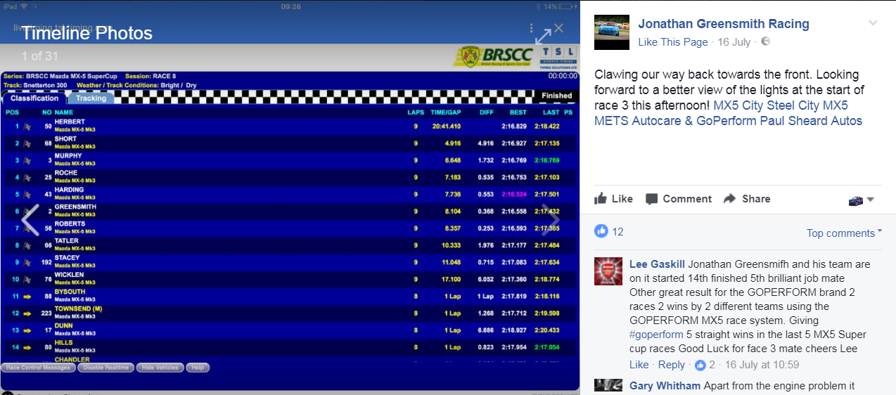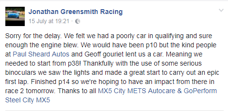 Jonathan then thankfully got off to a great start and managed to pull himself from p14 to 5th.