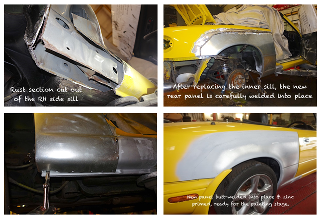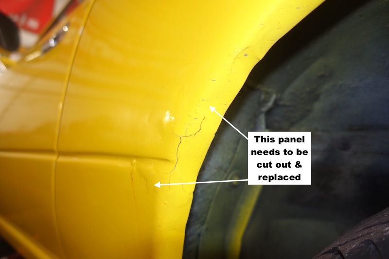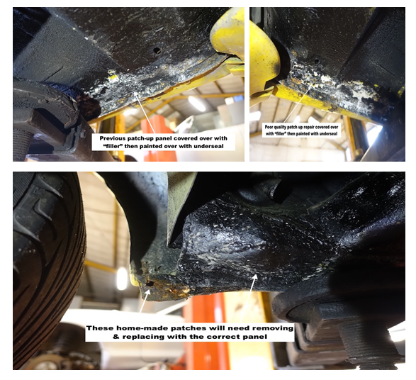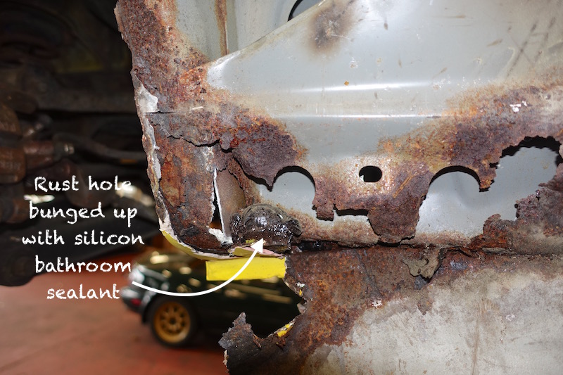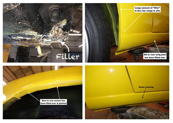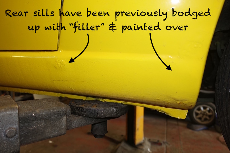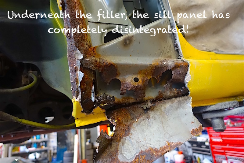 Unfortunately the car had been very poorly “botched up” by a previous owner, using copious quantities of body “filler” to carefully cover over the rusty sills and wheel-arches.
