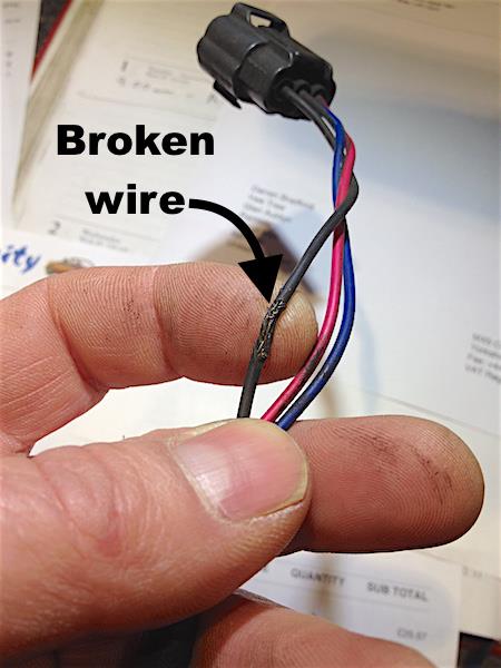 Well we checked the usual suspects (plugs, leads, coil-pack, etc.) but the car was running fine, so how do you know when it's fixed? Simple. Let the customer take it away and you can bet as soon as he gets home it will stop working again! Luckily, he only lives up the road, so back it came. More checks and head-scratching, until Richard spotted a tiny break in the wiring for the crank sensor. Closer examination revealed that the wire had come loose and was rubbing against the water pump pulley. It was down to just one strand and was shorting out through the pulley, causing the intermittent running fault. Five minutes with the soldering iron and insulating tape and it was good as new. The car's running smooth as silk again. A satisfying result all round!